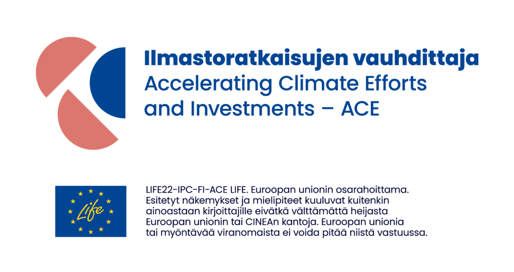 Lue hankkeen kuvaus kokonaisuudessaan Syken Hiiineutraalisuomi.fi -sivustolta: Hiilineutraalisuomi > Ilmastoratkaisujen vauhdittaja (ACE)