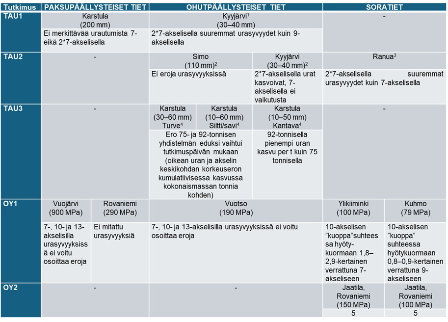 - Vuorimies, Nuutti; Varin, Petri & Kolisoja, Pauli (2023). Ohutpäällysteisen tierakenteen rasittumisen vertailututkimus 2022: Kuormituskokeet 92- ja 75-tonnisilla ajoneuvoyhdistelmillä. Väyläviraston julkaisuja 59/2023. Linkki julkaisuun Lisätietoja: Tampereen yliopiston projektipäällikkö Nuutti Vuorimies, puh. 040 720 3050 & professori Pauli Kolisoja, puh. 040 585 1025