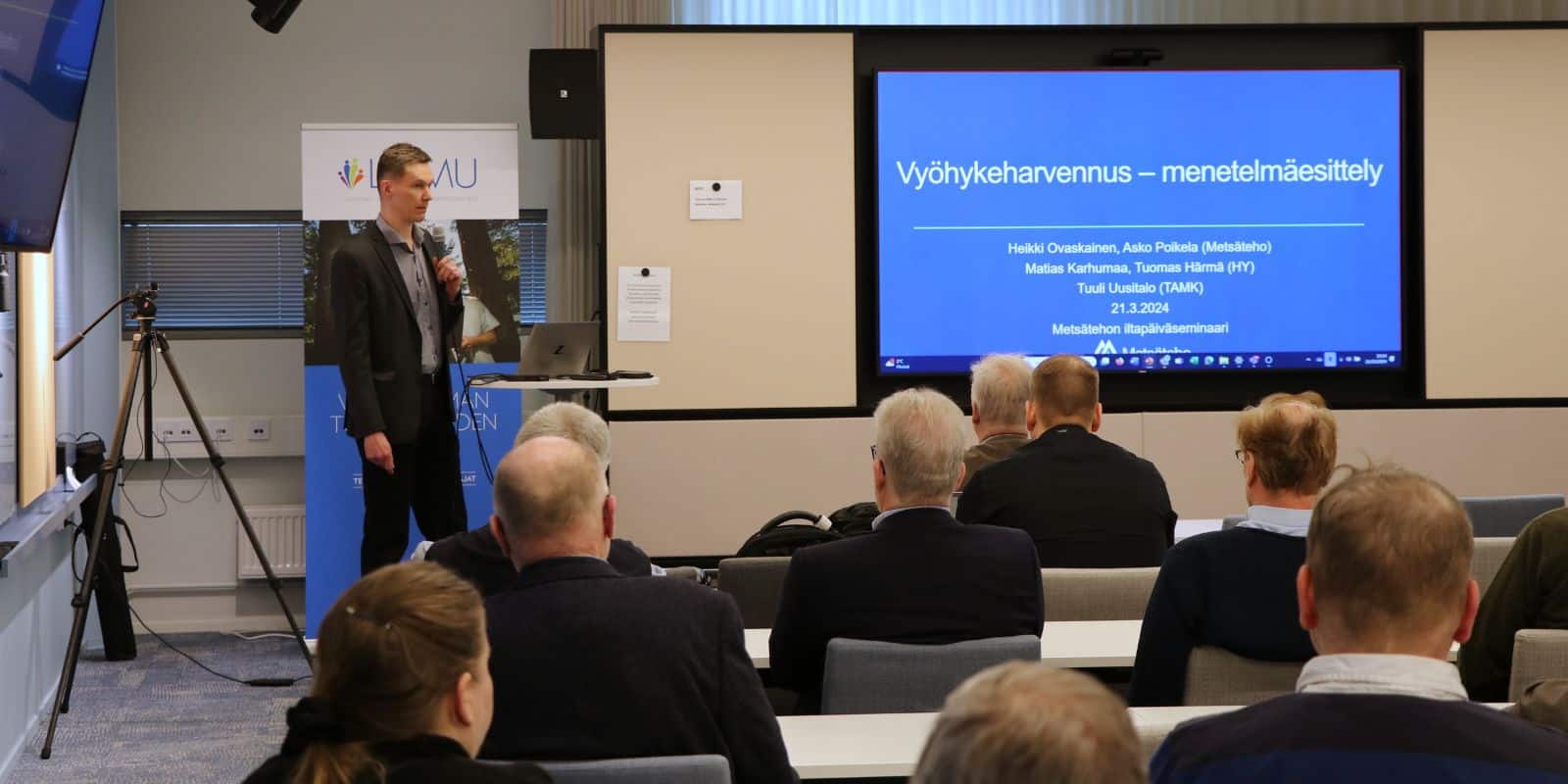 Metsätehon iltapäiväseminaari järjestettiin Teollisuuden Metsänhoitajat ry:n vuosikokouksen yhteydessä torstaina 21.3.2024. Seminaarissa käsiteltiin puunkorjuun ajankohtaisia asioita. Esitysten aiheina olivat vyöhykeharvennus, metsäkoneenkuljettajien koulutus sekä kuljettajaa avustavat järjestelmät niin kuljettajien, kuin laitevalmistajienkin näkökulmasta.
