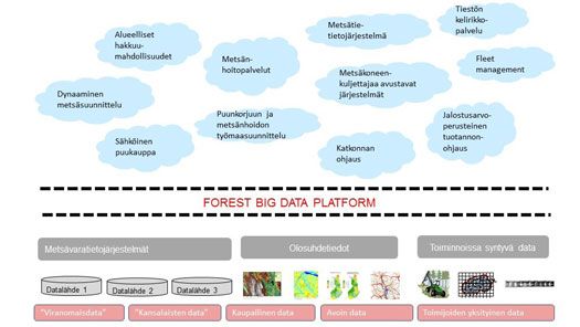 Kirjoittaja Tapio Räsänen, Jarmo Hämäläinen, Miika Rajala, Risto RitalaMetsätehon raportti 245Julkaistu 2017 Kaavio löytyy suurempana raportista (kuva 2). Metsätehon raportti 245: Metsävaratiedon hyödyntäminen puuhuollossa. Forest Big Data -hankkeen osaraportti