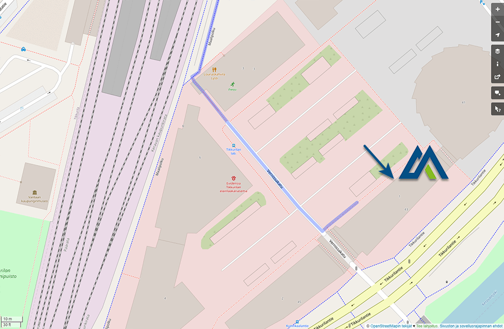 Vernissakatu 1, Vantaa (2. kerros). Toimisto on Tikkurilantietä sivuavassa rakennuksessa.